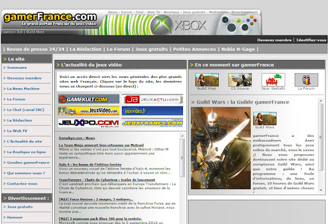 Intéressante version, bâtarde, le cul entre deux chaises, une pièce de collection : La période où j'avais décidé d'une évolution visuelle marquée et d'une modernisation franche du site, mais sans avoir adopté le nom qui est toujours en vigueur aujourd'hui : GAMERFRANCE.